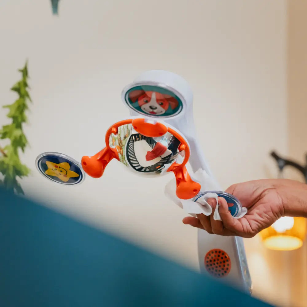 To confirm this need, one CLS posted on the Association of Child Life Professionals (ACLP) Forum, asking colleagues for input. The response was overwhelming. Key requirements included easy disinfection, secure crib attachment, superior developmental features, and no loose parts. These insights launched a collaborative process that led to the creation of the Nurture Smart™ Crib Mobile and, eventually, four additional hospital-safe developmental products.
