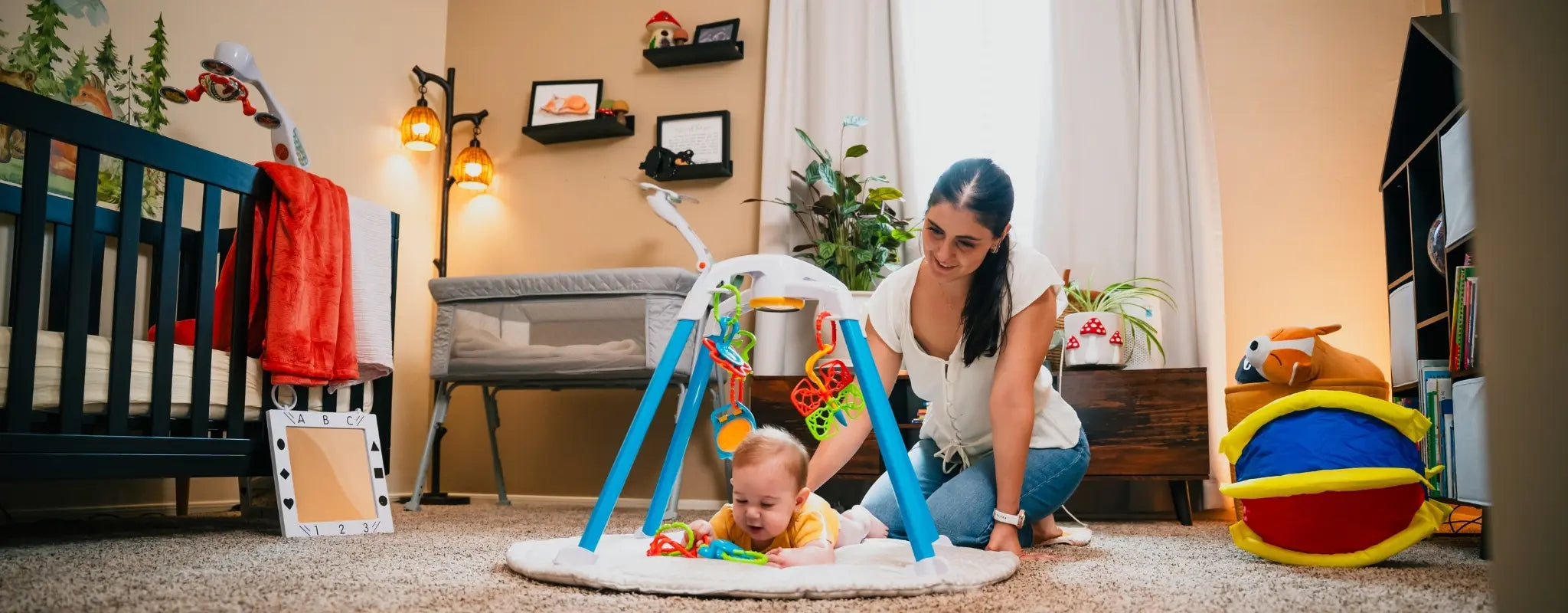 Give your baby everything they need to grow and thrive with our Smart Start Bundles. Each bundle includes our most loved Nurture Smart™ products designed to support early development — the Tactile Baby Mirror, Activity Play Gym, and Therapeutic Sensory Ball — plus your choice of mobile.